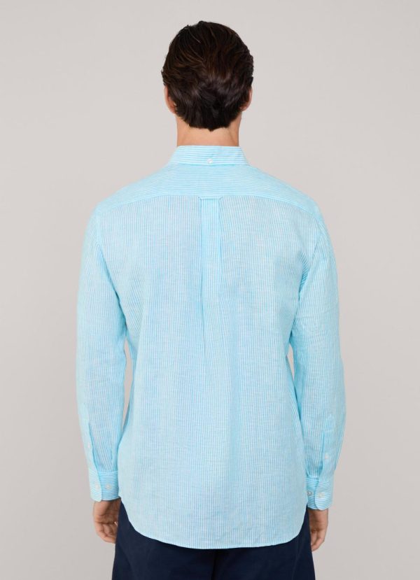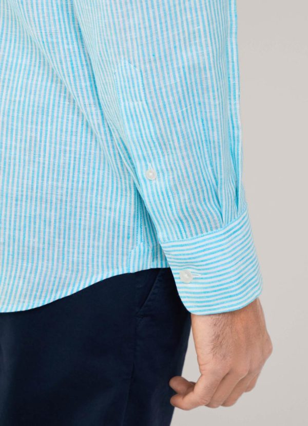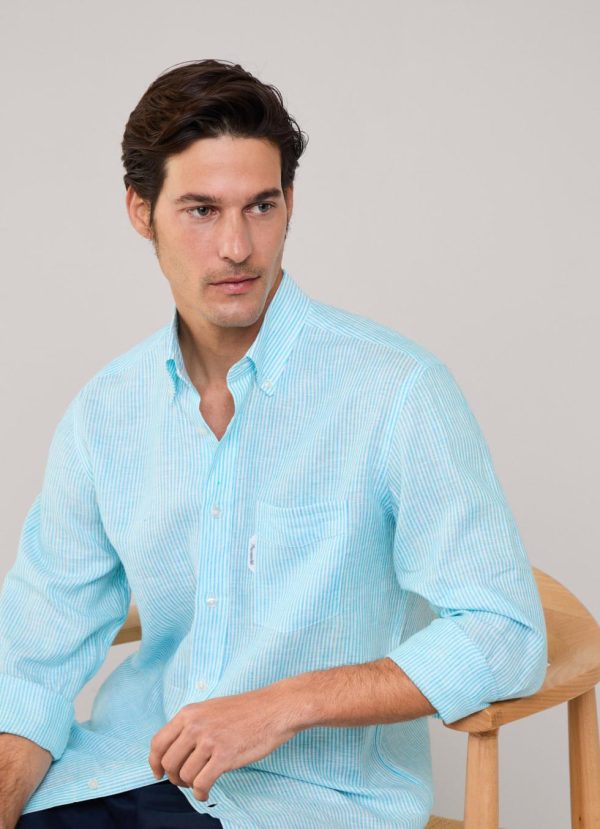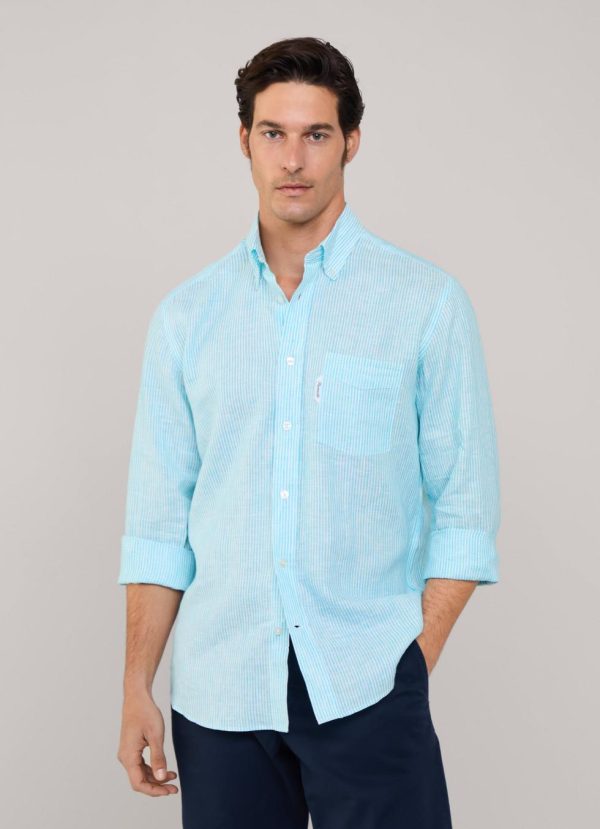 Façonnable Casual Shirts | Men Regular Fit Bengal Striped Linen Shirt Modern Blue