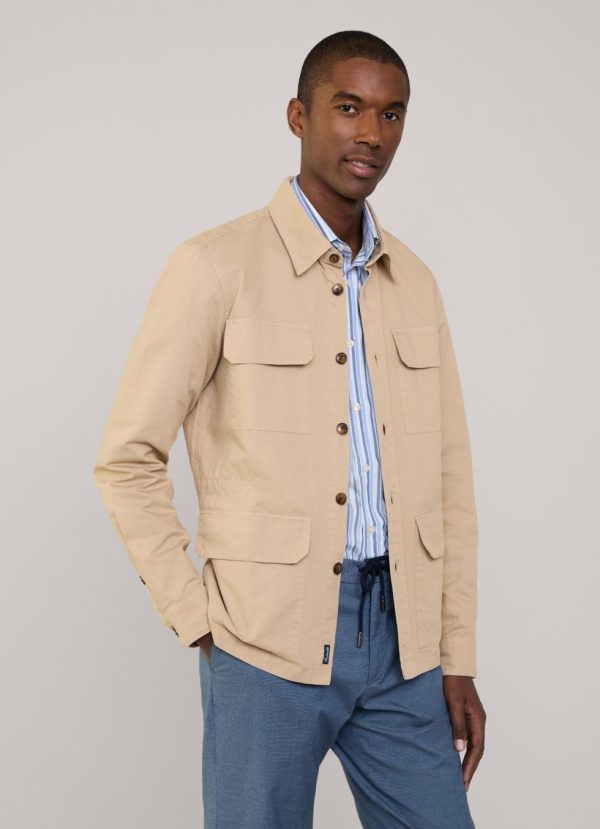 Façonnable Coats & Jackets | Men Linen Cotton Cargo Overshirt Light Beige