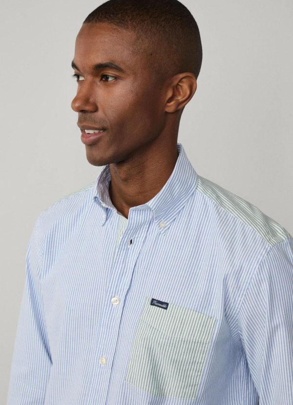 Façonnable Iconic Shirts | Men Regular Fit Bengal Striped Oxford Shirt Grey Olive Green