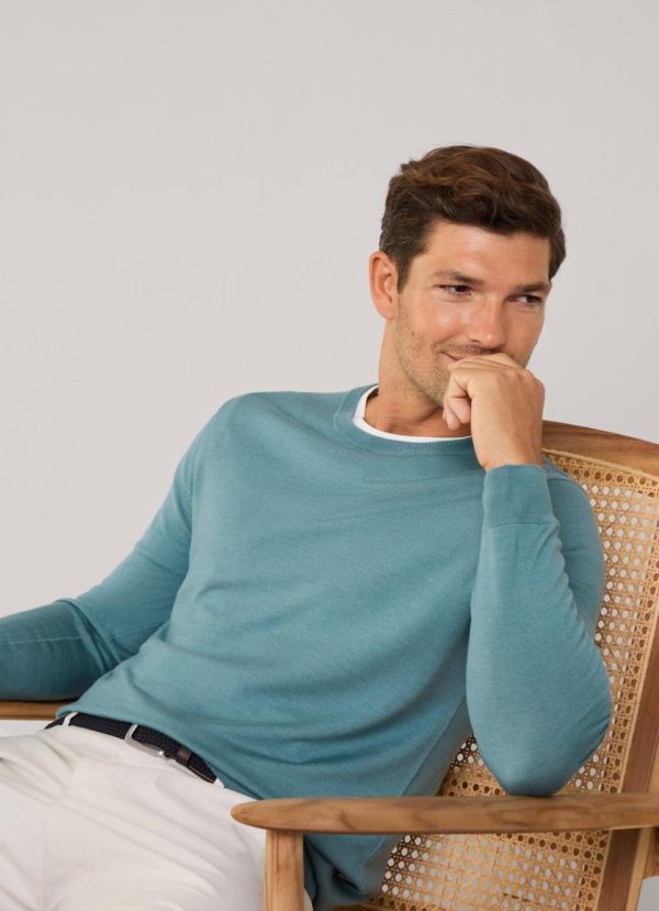 Façonnable Knitwear | Men Merino Wool Crew Neck Jumper Meadow Blue