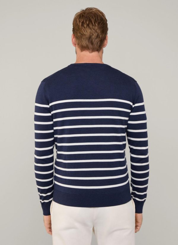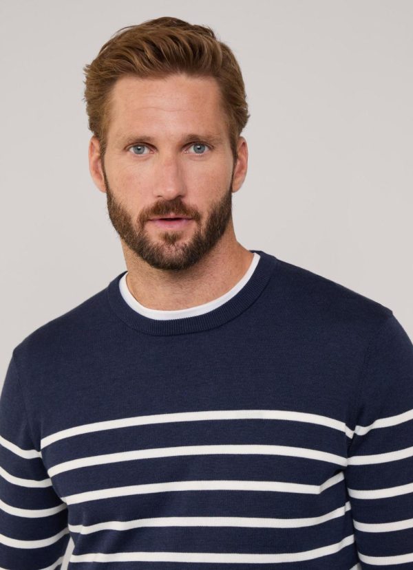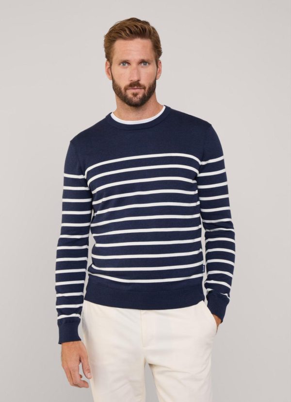 Façonnable Knitwear | Men Striped Crew Neck Jumper Marine Blue