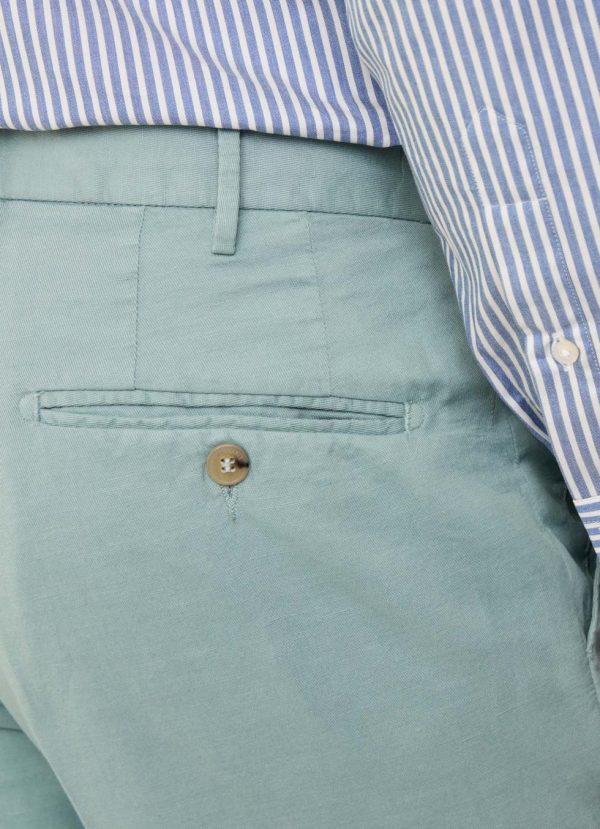 Façonnable Pants | Men Regular Fit Cotton Linen Trousers Fanfare Green