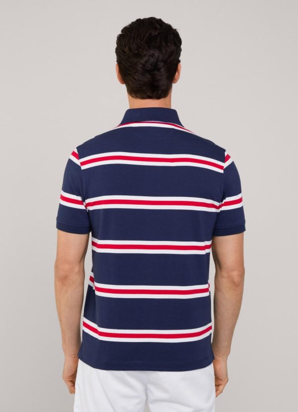 – Horizontal regiment stripe print.
