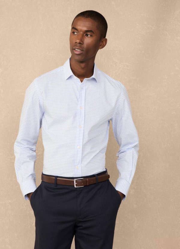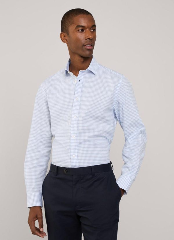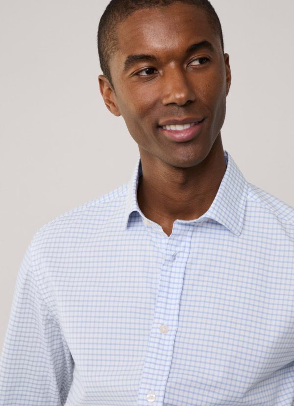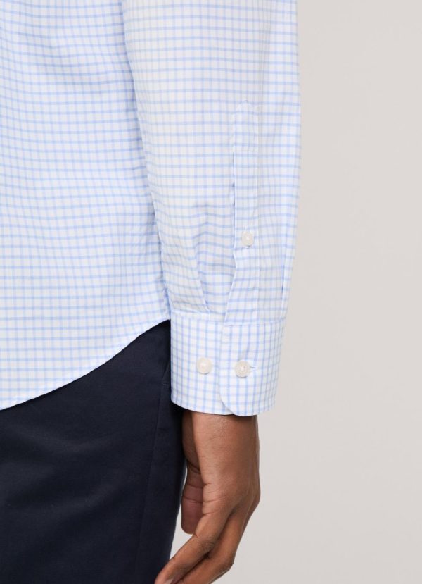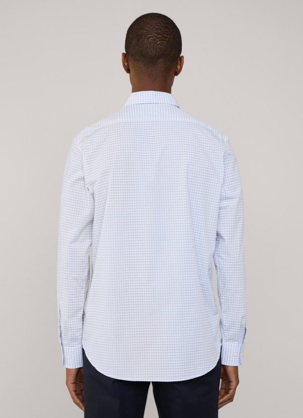 Façonnable Shirts | Men Regular Fit Check Poplin Shirt Horizon Blue
