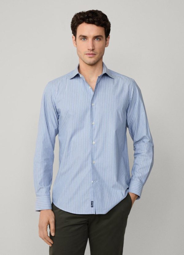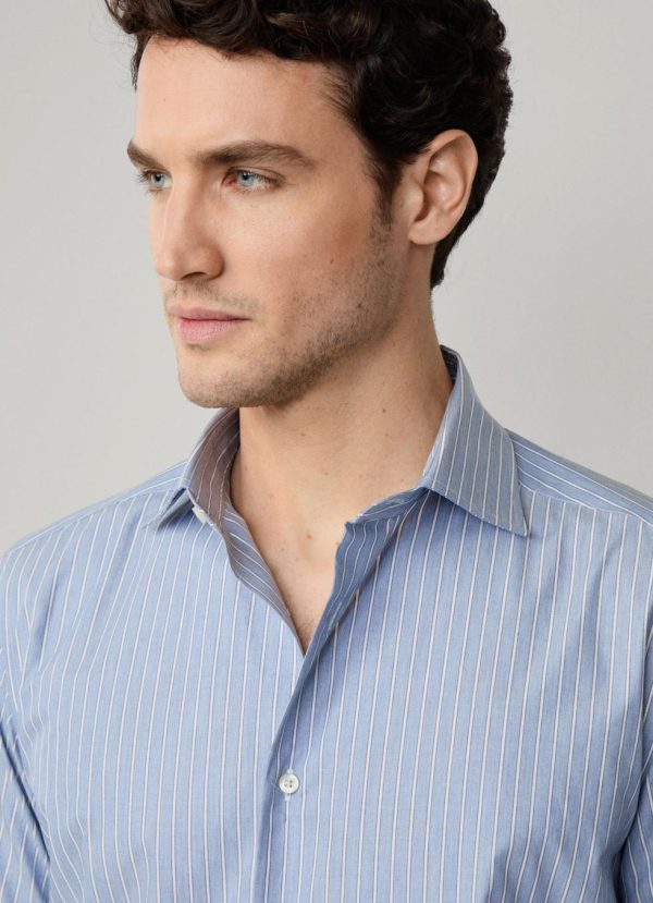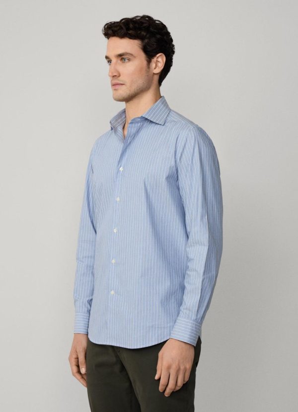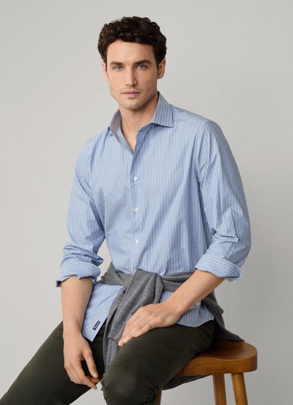 Façonnable Shirts | Men Regular Fit Shadow Stripe Melange Shirt Blue Marl