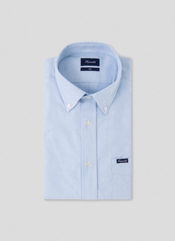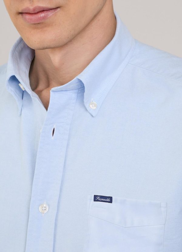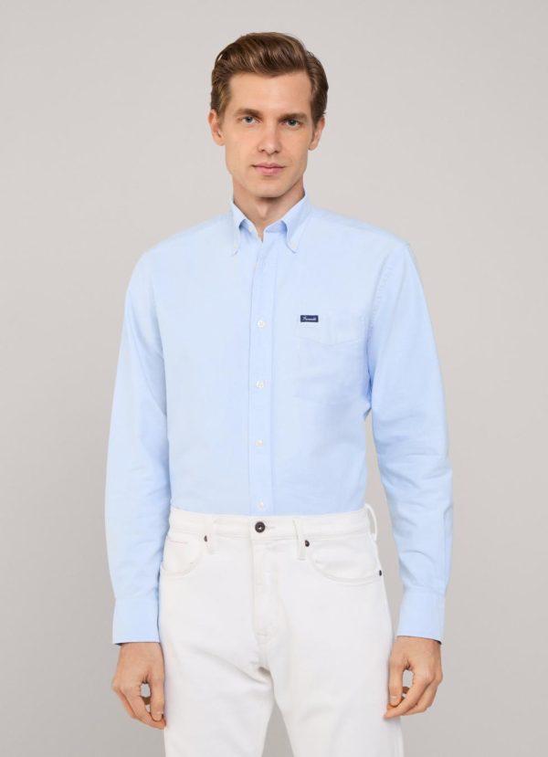 Façonnable Shirts | Men Regular Fit Washed Oxford Shirt Horizon Blue