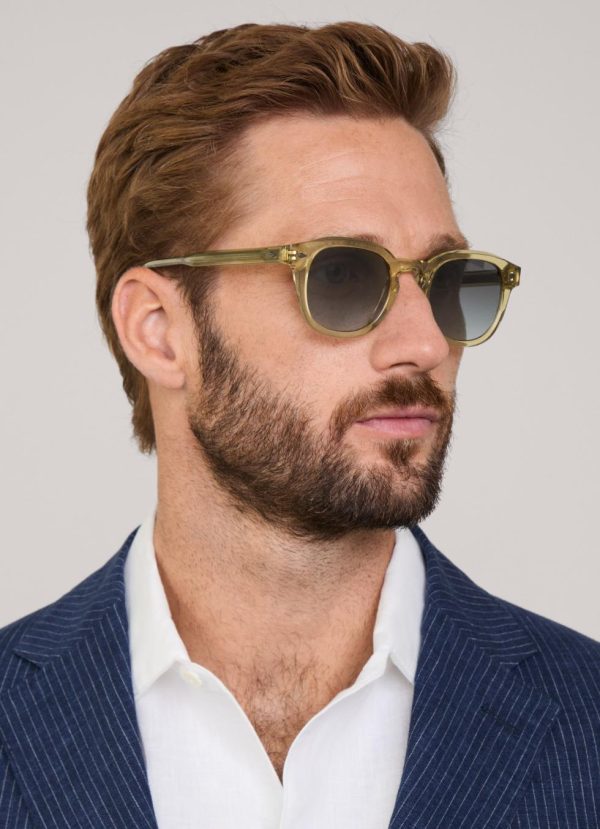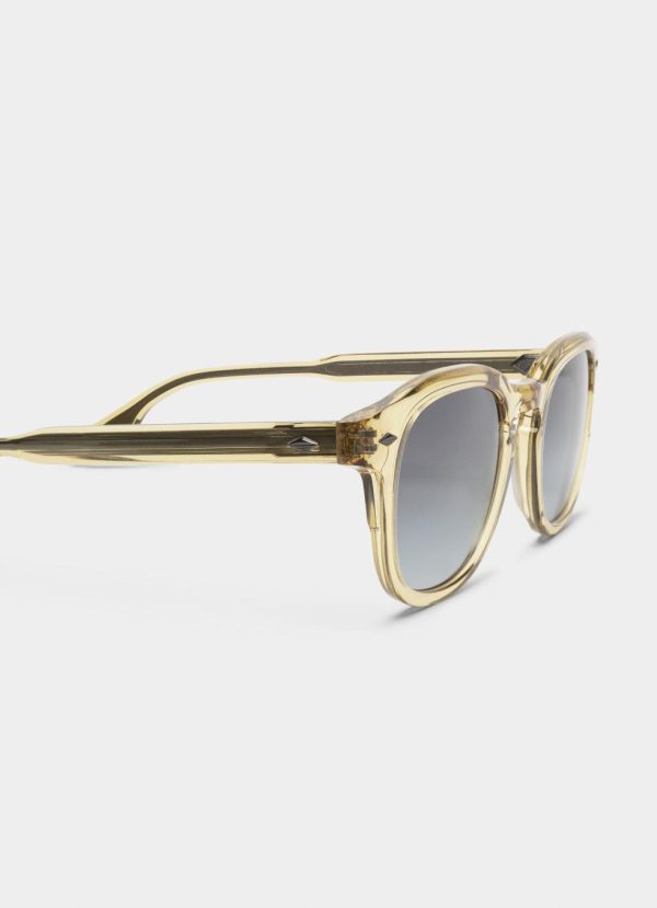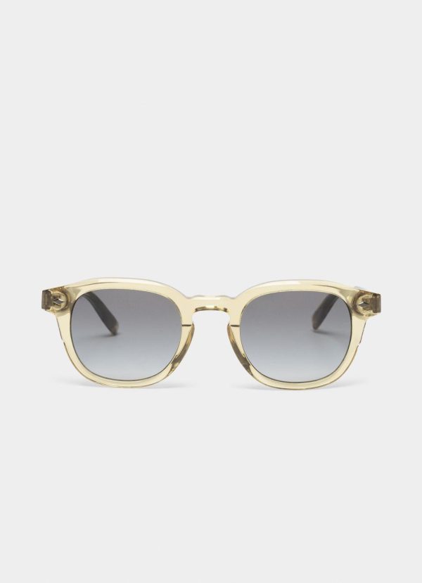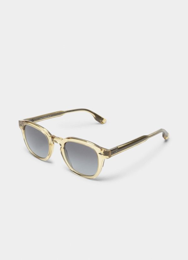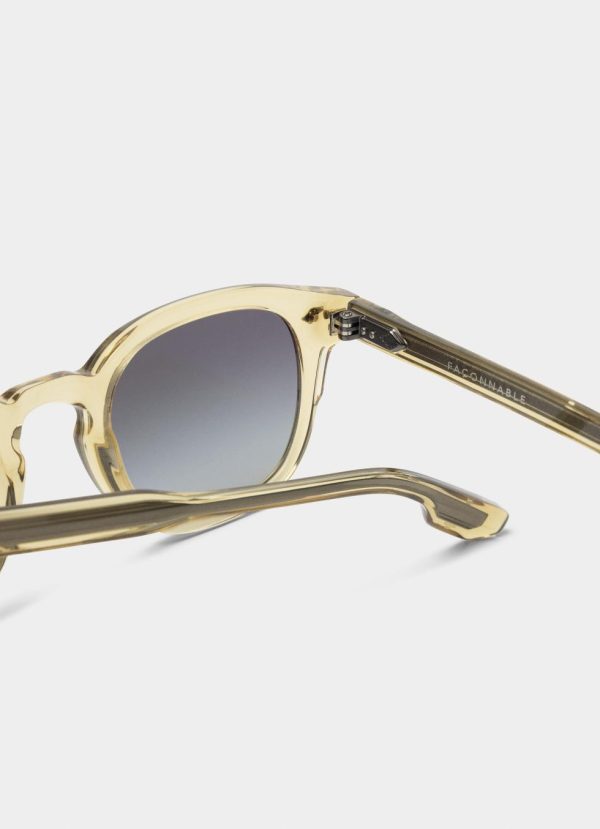 – Translucent acetate frame with a tortoiseshell appearance in yellow tones.
